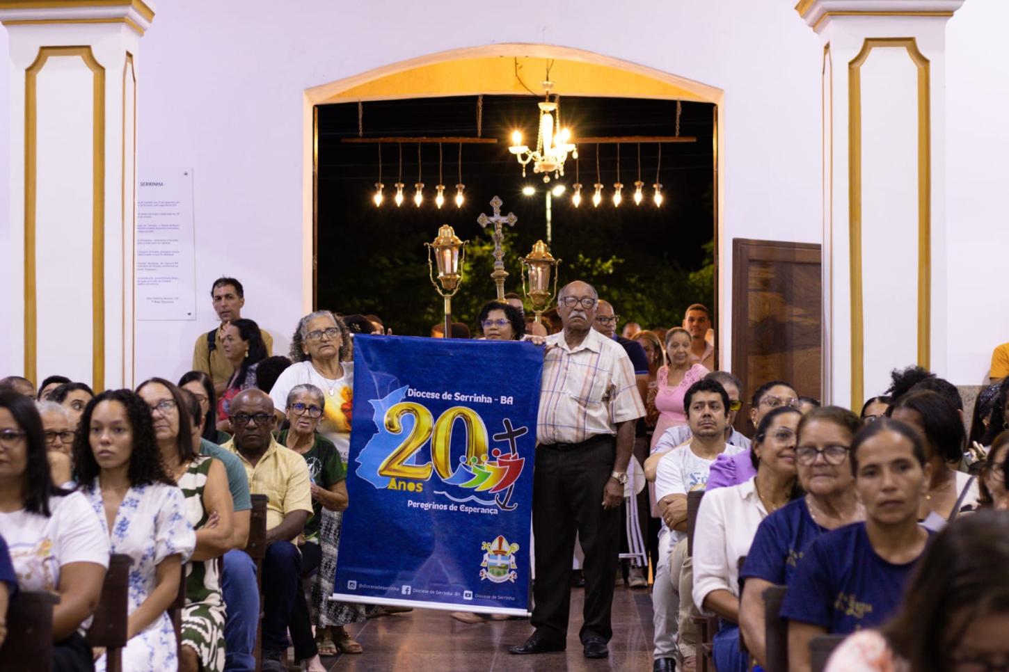 A Eucaristia foi presidida por Dom Hélio Pereira dos Santos, bispo diocesano, e contou com a presença do bispo emérito Dom Ottorino Assolari, primeiro bispo da Diocese, que concelebrou esta celebração jubilar. O momento foi marcado por profunda ação de graças: por cada passo dado, por cada comunidade edificada e por cada vida doada ao longo destas duas décadas de caminhada eclesial